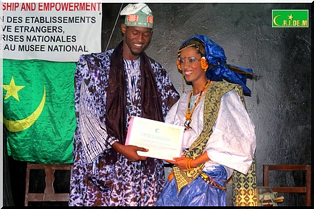 Avant eux, par un défilé possédant et chaleureux élaboré à partir de tenues traditionnelles, des étudiantes se sont transformées en Miss soigneusement tatouées à l’occasion pour ressortir la beauté de la femme mauritanienne et les différentes facettes de la mode traditionnelle mauritanienne dans toute sa diversité culturelle.
