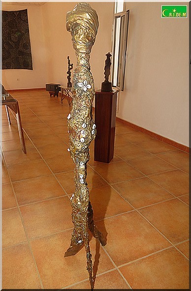 L’exposition s’ouvre sur une sculpture aux formes déliées et secrètes. Il s’agit de "Jeune fille" sculptée en deux versions. "On ne sait pas si c’est une mauresque, une halpoular, une Wolof ou une Soninké", note Mokhis qui explique que l’essentiel n’est pas de regarder mais de sentir fondre les identités et les différences dans le moule de l’unicité.
