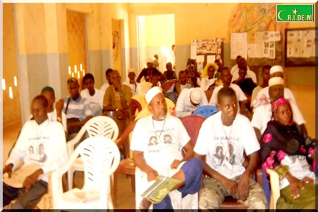 Le public a eu droit aussi à un résumé des trois réunions au Sénégal ayant pour but d’aboutir au recensement général des réfugiés mauritaniens au Sénégal : A Richard-Toll sous la présidence de Mme Emmanuelle du Haut-Commissariat aux Réfugiés avec les chefs de sites, le 19 janvier 2014, à Saint-Louis, et le 18 juin 2014 avec le HCR et l’Ambassade des USA au Sénégal. Si la volonté demeure du côté du pays de la téranga, du côté mauritanien on reste indifférent.