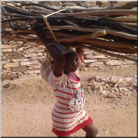 Dans le même village de Sokolo, sur notre chemin, nous apercevons la petite Bintou Karembé, âgée de neuf ans, un fagot de bois sur sa tête. Elle témoigne aussi d’un quotidien difficile. « Chaque jour, je pars le matin pour aller chercher du bois pour la cuisine et je marche plus d’une dizaine de kilomètres.