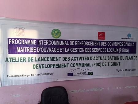 Dans le cadre de la poursuite de ses activités, un atelier de lancement du PDC a eu lieu dans la commune de Tiguint le 17 mars 2017. Cet atelier marque la première étape de réalisation d’un plan de développement communal notamment le diagnostic participatif précédé par la phase préparatoire. Le Maire de la commune de Tiguint, Monsieur Hamadi Vayiq Sidi a ouvert l’atelier en exhortant les membres du CCC et des services techniques d’accorder une importance capitale au processus d’actualisation du PDC.