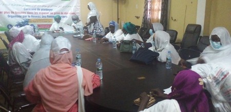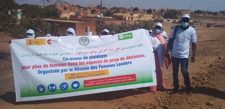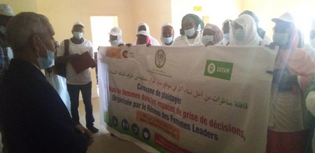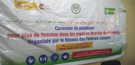 Après cette conférence, les dames leaders ont marché en direction de la Mougataa, tenant une géante banderole sur laquelle on pouvait lire : caravane de plaidoyer pour plus de femmes dans les espaces de prise de décision organisé par les femmes leaders afin de deposer leur note de plaidoyer. Le Hakem, trouvé sur place et tiré à quatre épingles est sorti les accueillir.