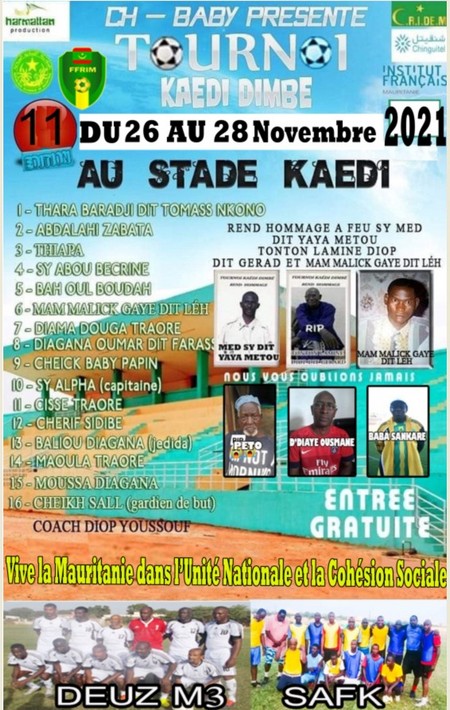 Un match de gala est également prévu le jour de la fête de l’indépendance, il rend hommage aux anciens sportifs et dirigeants décédés de Kaédi, en collaboration avec la mairie et le conseil régional du Gorgol.