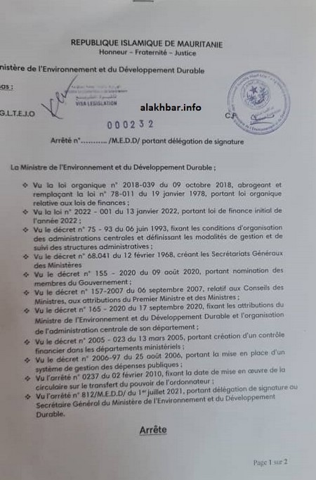 Adrar Info - La ministre de l’Environnement et du Développement durable, Mariem Bekaye, a retiré les pouvoirs de signature au secrétaire général du ministère ,maire de la commune de Rkiz Mohamed Ould Ahmedoua, après l’escalade du différend qui les oppose au cours de la période récente.