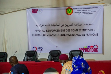 La cérémonie de lancement a été présidée par le Conseiller chargé de la coopération internationale du Ministère de l’Education Nationale et de la Réforme du Système Educatif en présence du Représentant de l’Agence universitaire de la Francophonie (AUF) en Mauritanie, du Directeur de l’Ecole Normale des Instituteurs de Nouakchott (ENI) et de la Directrice générale de l’enseignement du Ministère de l’Education Nationale et de la Réforme du Système Educatif.