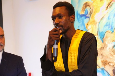 « Dans cette exposition, il évoque son environnement quotidien à Nouakchott et particulièrement son quartier situé entre Basra et Kouva : des animaux domestiques, des oiseaux, des objets du quotidien, des poissons qui attendent d’être grillés, des tongs, une bouilloire, un petit banc, une charrette, scène de la vie ordinaire à Nouakchott », détaille le directeur délégué de l’Institut Français de Mauritanie, Christophe Roussin, dans un mot de bienvenue.