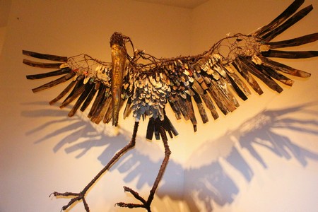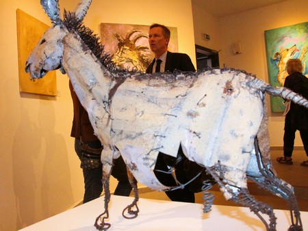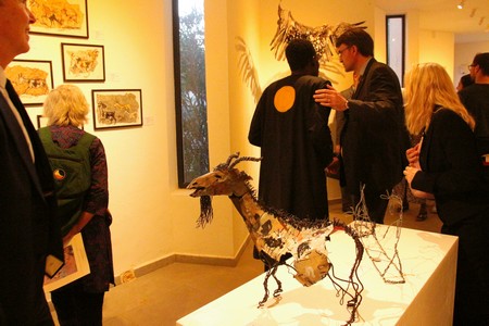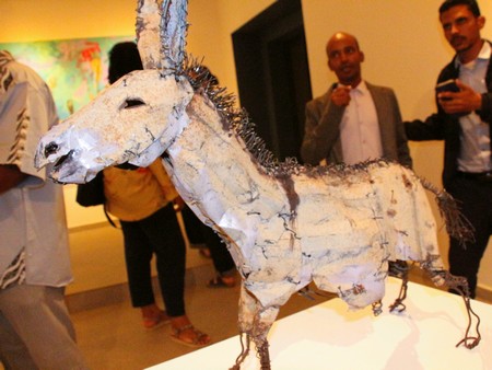 « Les animaux d’Oumar Ball semblent plus vivants qu’ils sont comme suturés, recousus, réparés, issus de matière jetées au rebus récupérées pour l’essentiel dans la rue. Le sens de l’observation d’Oumar est tel qu’il fige dans un mouvement naturel le combat de deux chèvres, le vol d’un oiseau, la grâce d’une chèvre qui boit, ou qu’il campe sur ses quatre pattes un âne à l’air mutin », décrit Christophe Roussin.