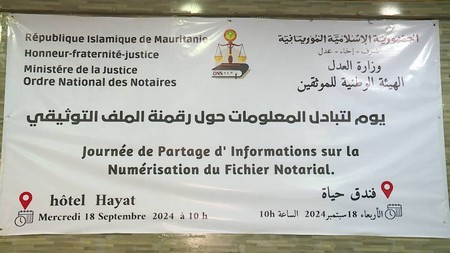 L'ordre national des Notaires de Mauritanie a présenté au cours d'un atelier tenu le 18 septembre 2024 à l'hôtel Hayatt une plateforme numérique dédié aux notairaires de Mauritanie.